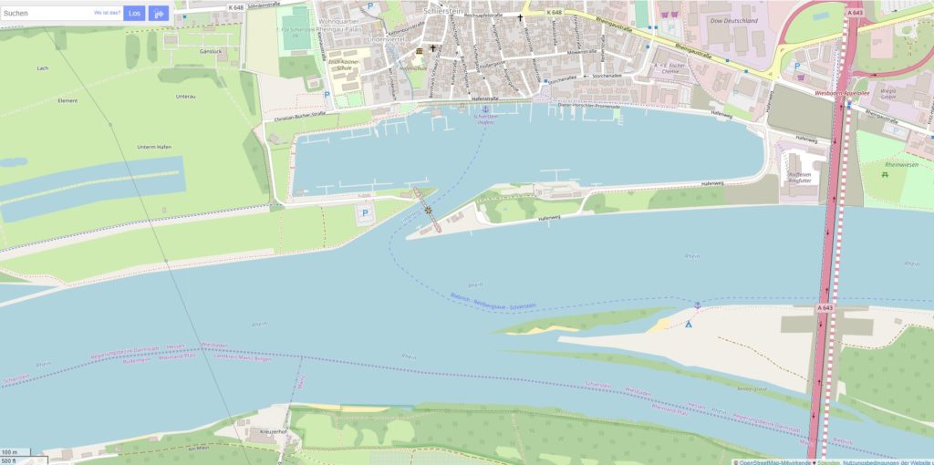 Der Schiersteiner Hafen und die gesuchte Stelle liegen fast gegenüber.